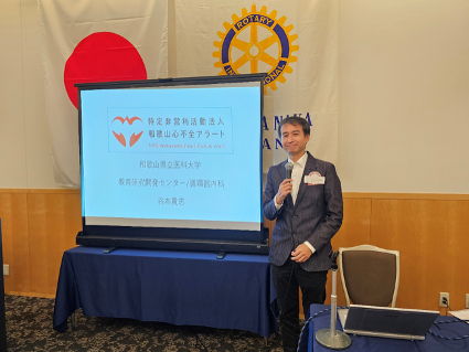 2025年5月30日、和歌山中ロータリークラブ様の例会にて、当NPOの代表が「心不全にご注意を」をテーマに卓話の機会をいただきました。心不全の予防や再発防止、多職種連携の取り組みについてご紹介しました。